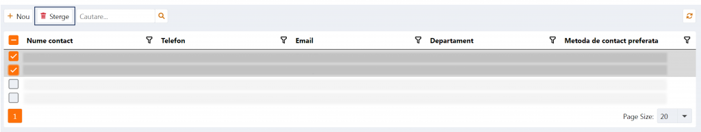 Stergerea din lista – In lista contactelor, bifeaza contactul care doresti sa fie sters si apasa pe butonul “Sterge”. Se pot selecta mai multe contacte pentru a fi sterse in acelasi timp.