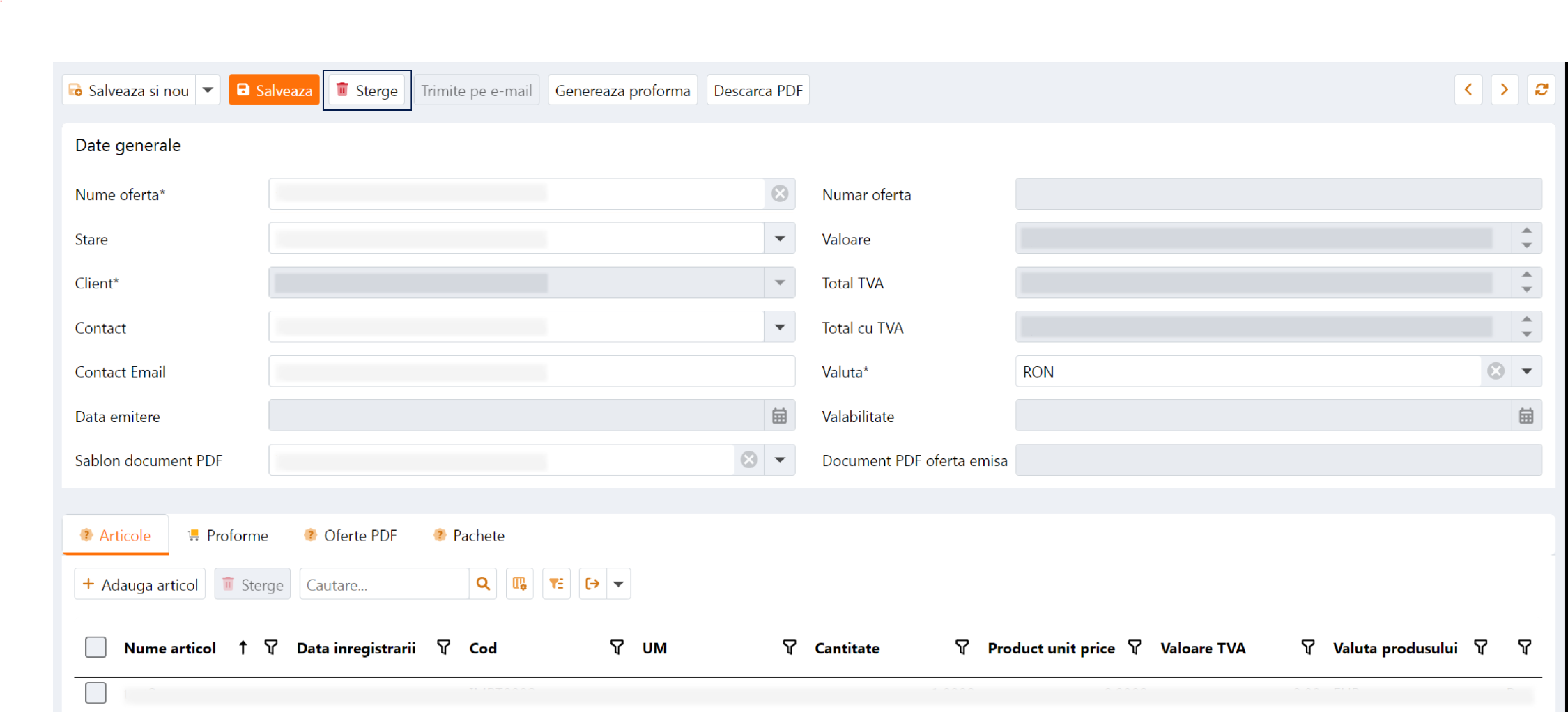 Stergerea din modul de editare – Ofertele pot fi sterse si din pagina de editare a ofertei. Apasa pe butonul “Sterge” si oferta va fi stearsa automat din lista ofertelor.