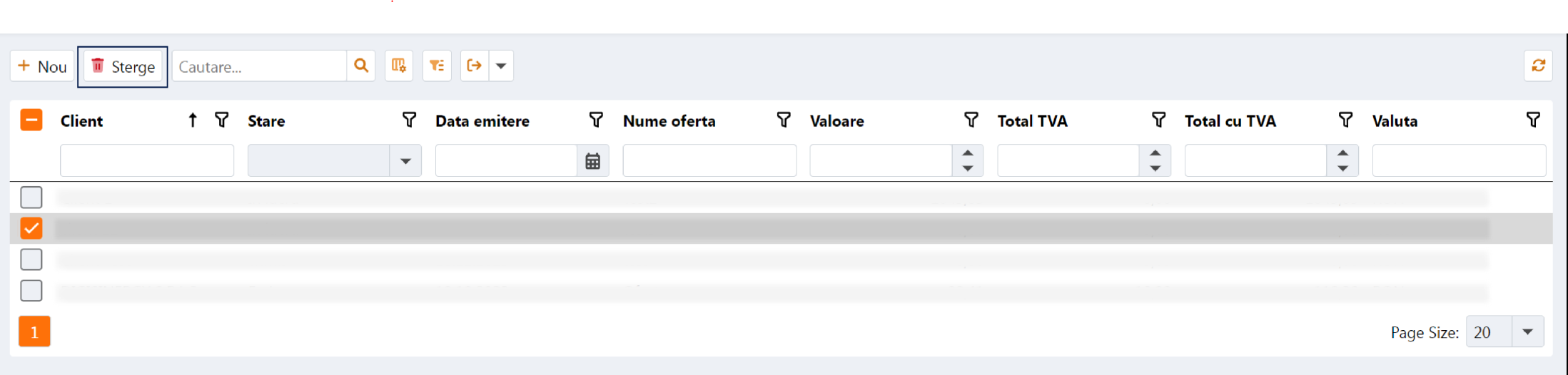 Stergerea din lista – In lista ofertelor, bifeaza oferta care doresti sa fie stearsasi apasa pe butonul “Sterge”. Se pot selecta mai multe oferte pentru a fi sterse in acelasi timp.
