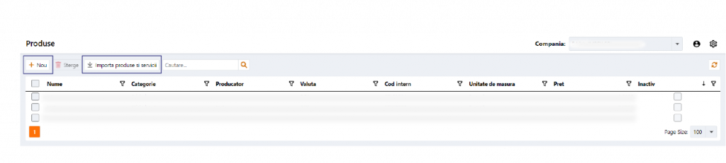 In sectiunea Nomenclator/Produse, apasa pe butonul “+ Nou”, pentru a adauga un produs nou sau apasa pe butonul “Importa produse si servicii” pentru a importa mai multe produse.