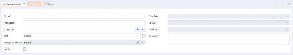Dupa completarea datelor apasa pe butonul “Salveaza” pentru a salva produsul nou creat.