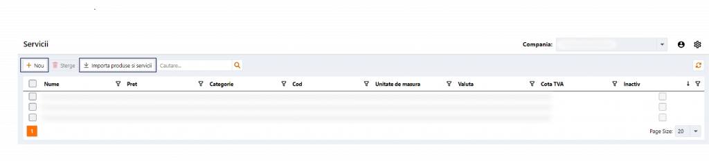In sectiunea Nomenclator/Servicii, apasa pe butonul “+ Nou”, pentru a adauga un serviciu nou sau apasa pe butonul “Importa produse si servicii” pentru a importa mai multe servicii.