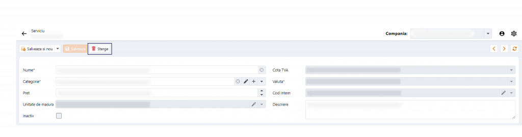 Stergerea din modul de editare – Serviciile pot fi stersesi din pagina de editare a serviciilor. Apasa pe butonul “Sterge” si serviciul va fi sters automat din lista serviciilor.