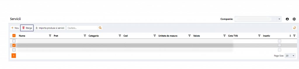 Stergerea din lista – In lista serviciilor, bifeaza serviciul care doresti sa fie sterssi apasa pe butonul “Sterge”. Se pot selecta mai multe servicii pentru a fi sterse in acelasi timp.